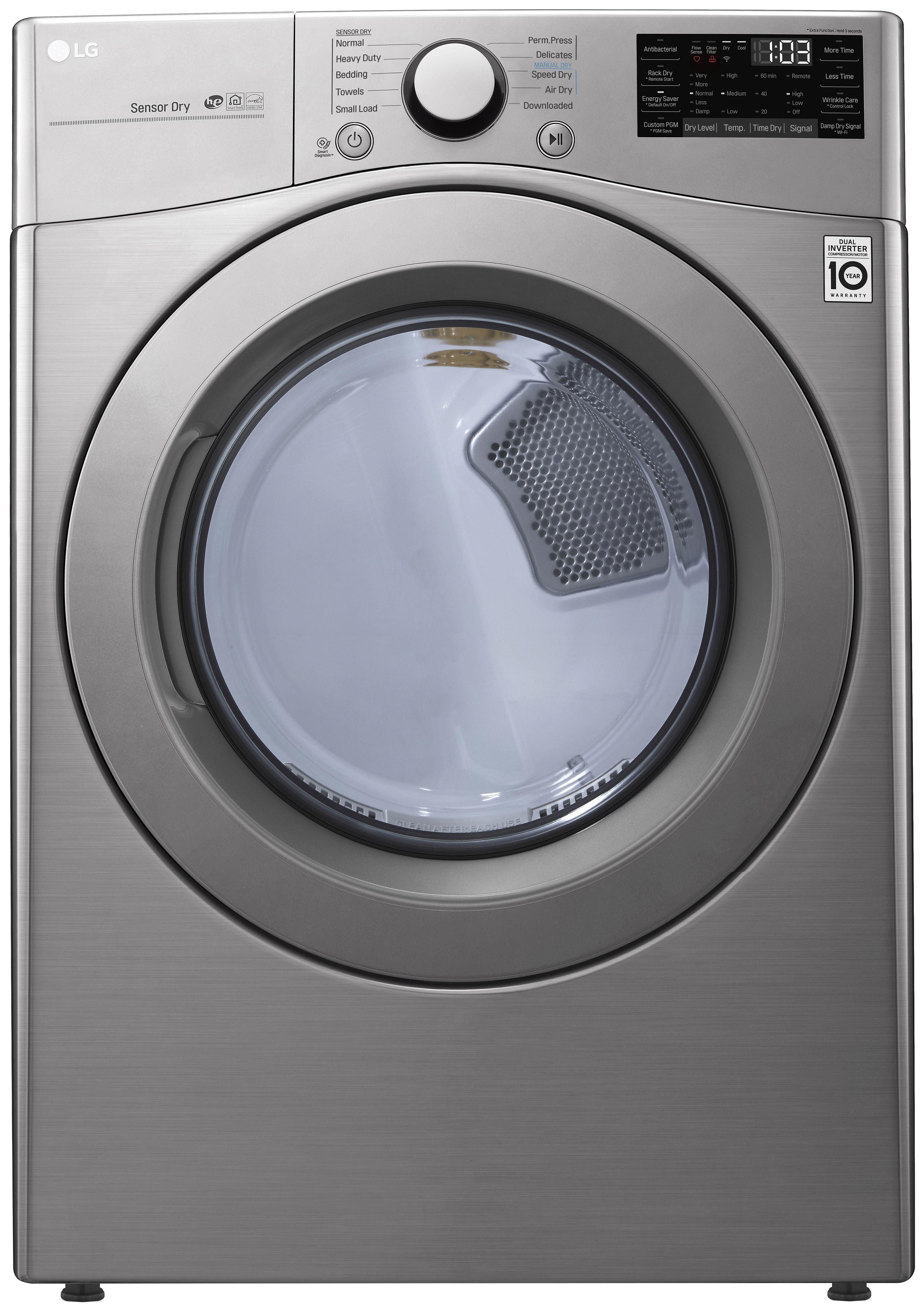 | 11 Options | More Time, Less Time, Damp Dry Signal, Wrinkle Care, Control Lock, Custom Program, PGM Save , Wi-Fi Connect, Anti-Bacterial, Energy Saver, Remote Start |